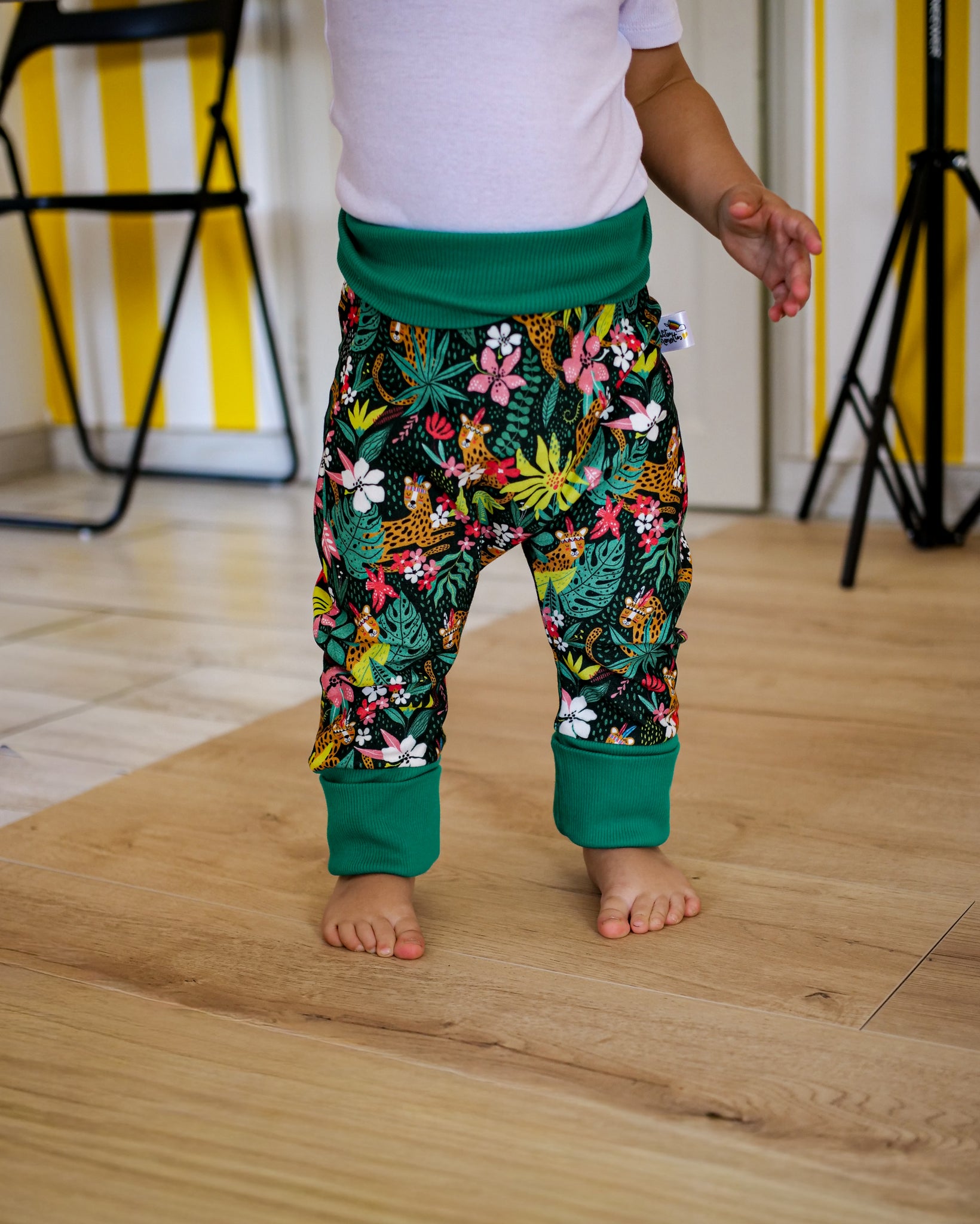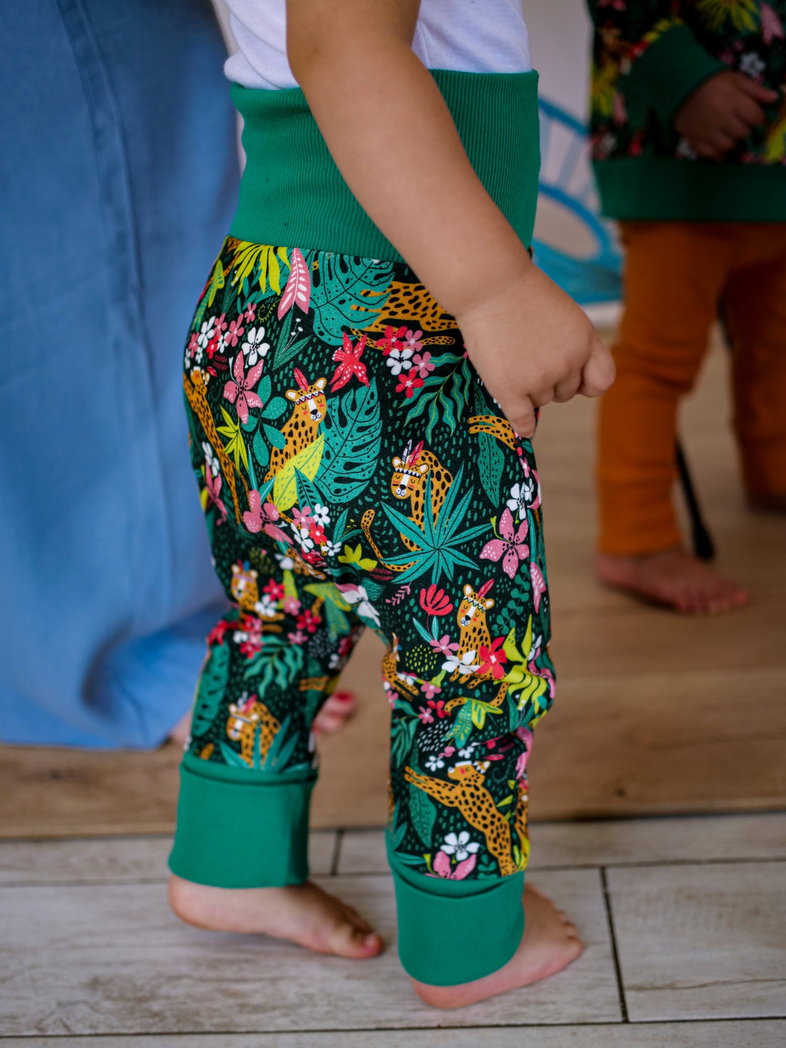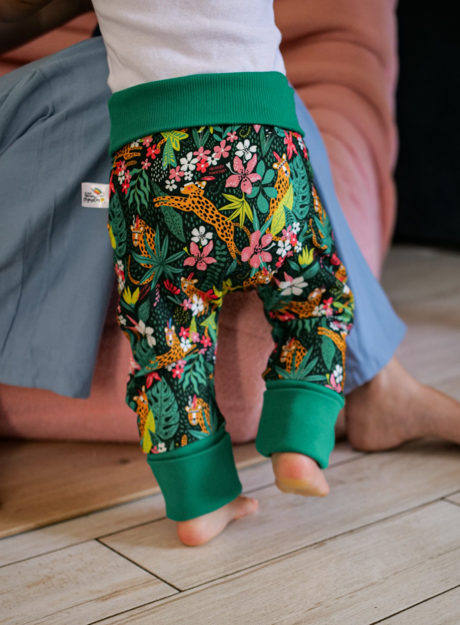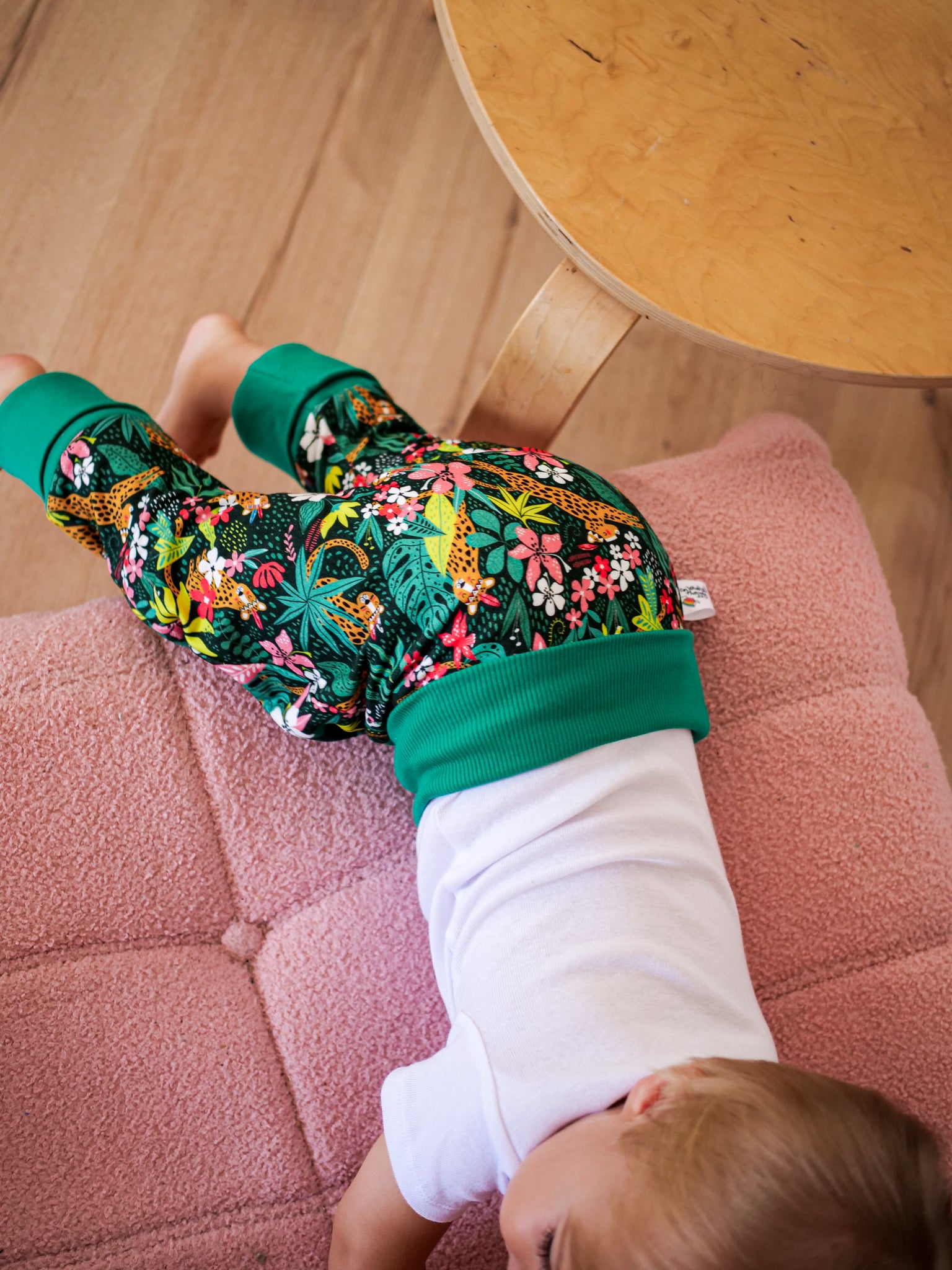 Ses larges bandes de bord-côte certifié GOTS vous permettront un ajustement optimal à sa morphologie et d'utiliser ce pantalon également en pantacourt et short quand l'enfant grandit.