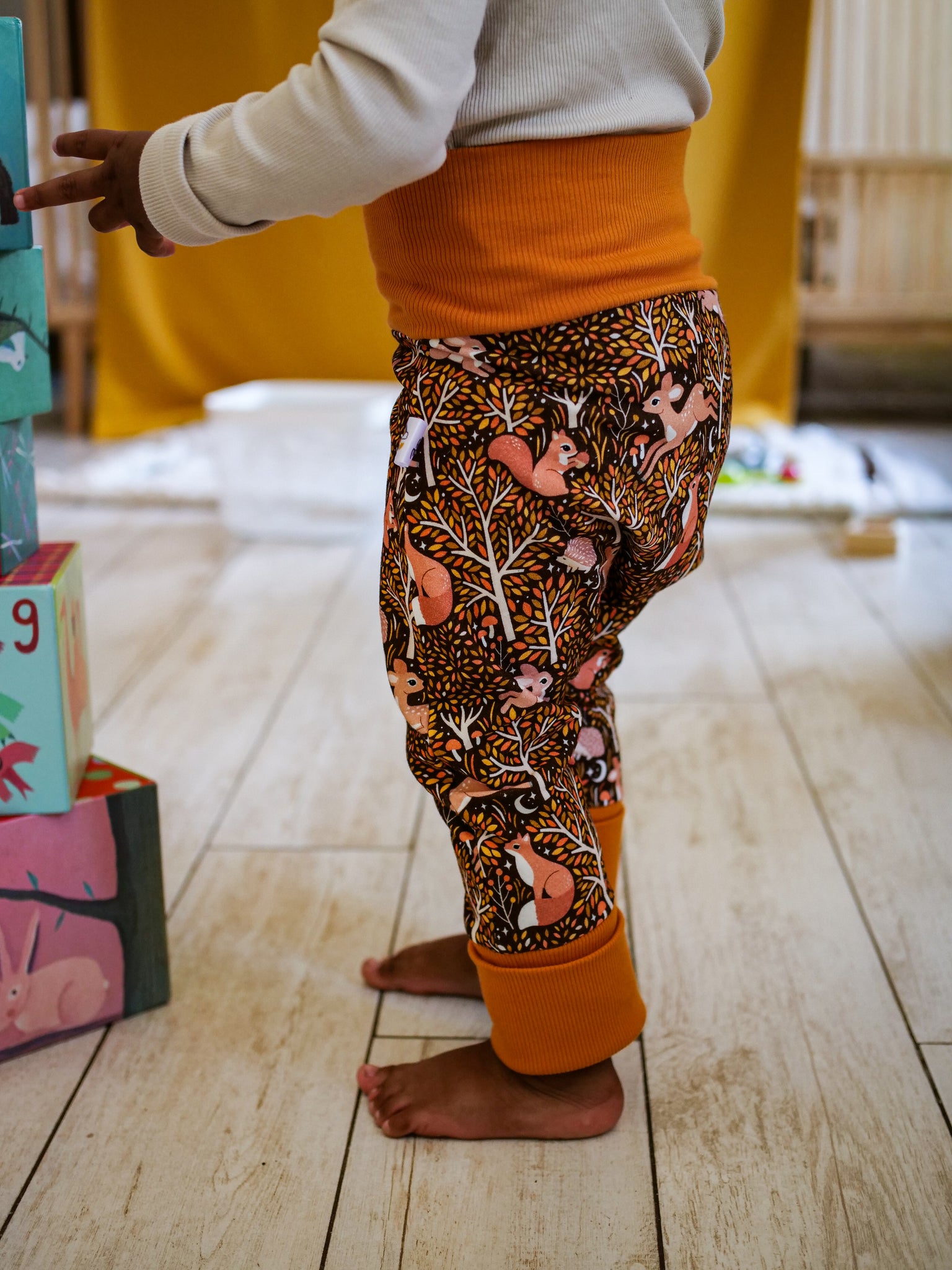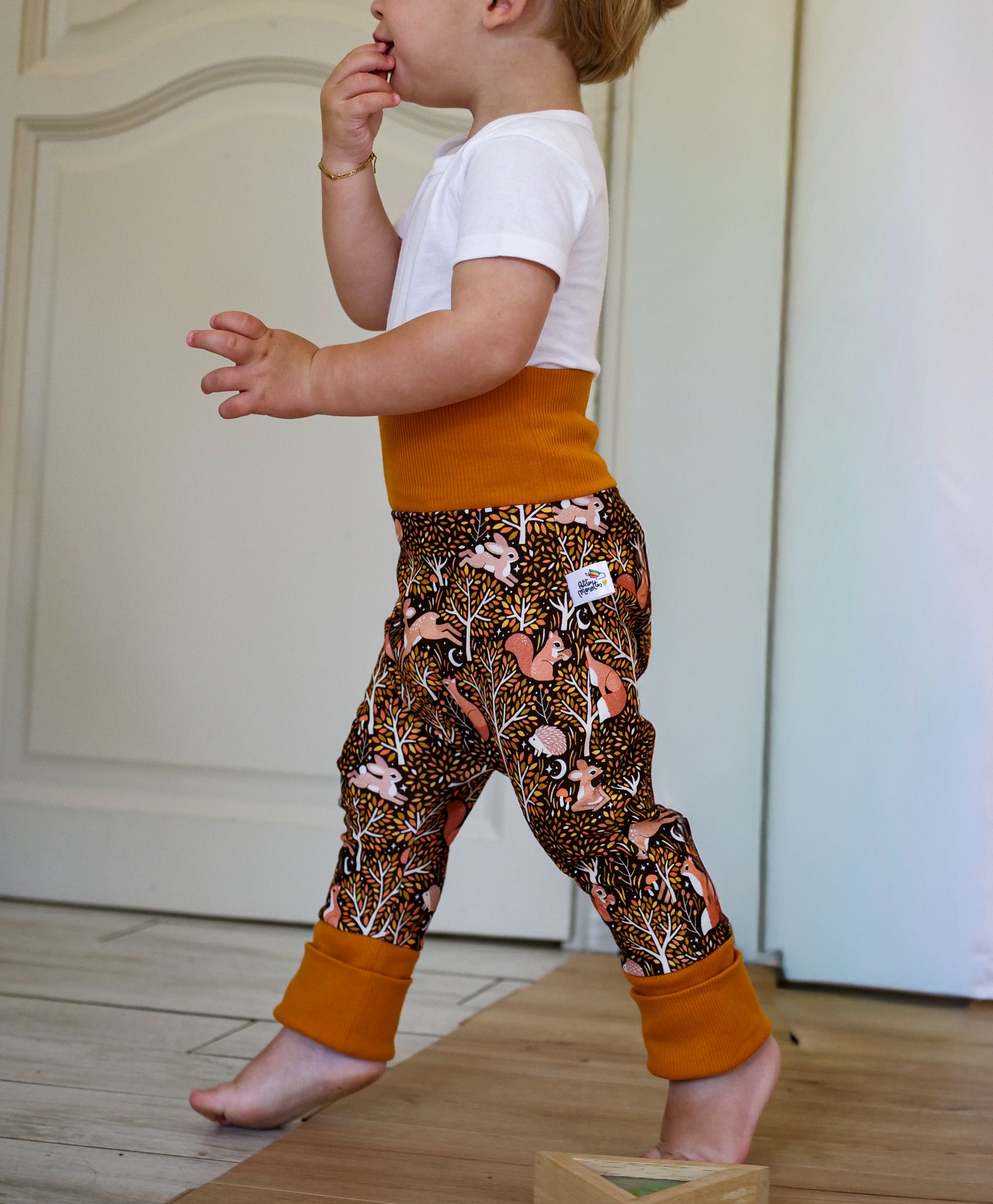 Ses larges bandes de bord-côte certifié GOTS vous permettront un ajustement optimal à sa morphologie et d'utiliser ce pantalon également en pantacourt et short quand l'enfant grandit.