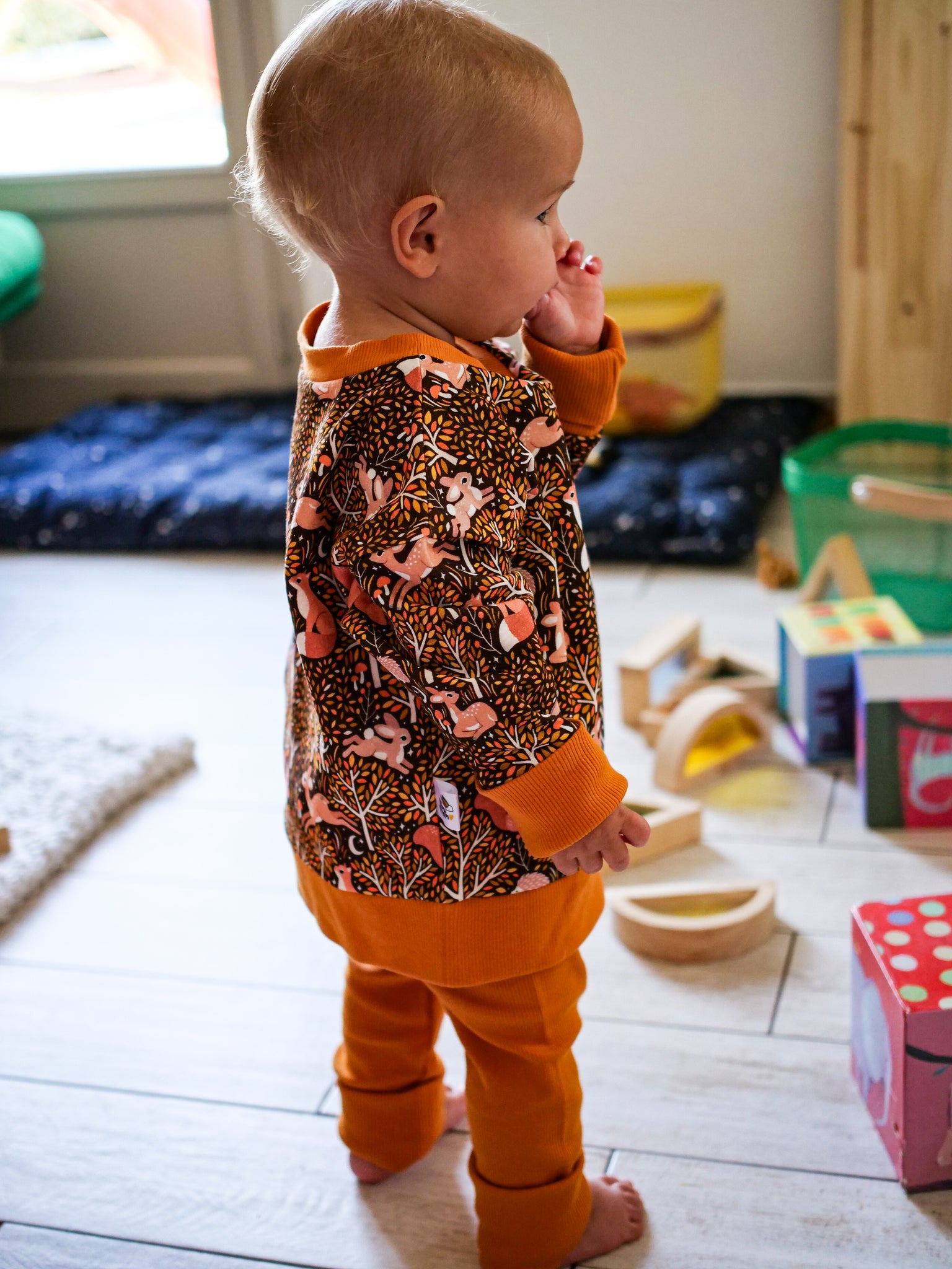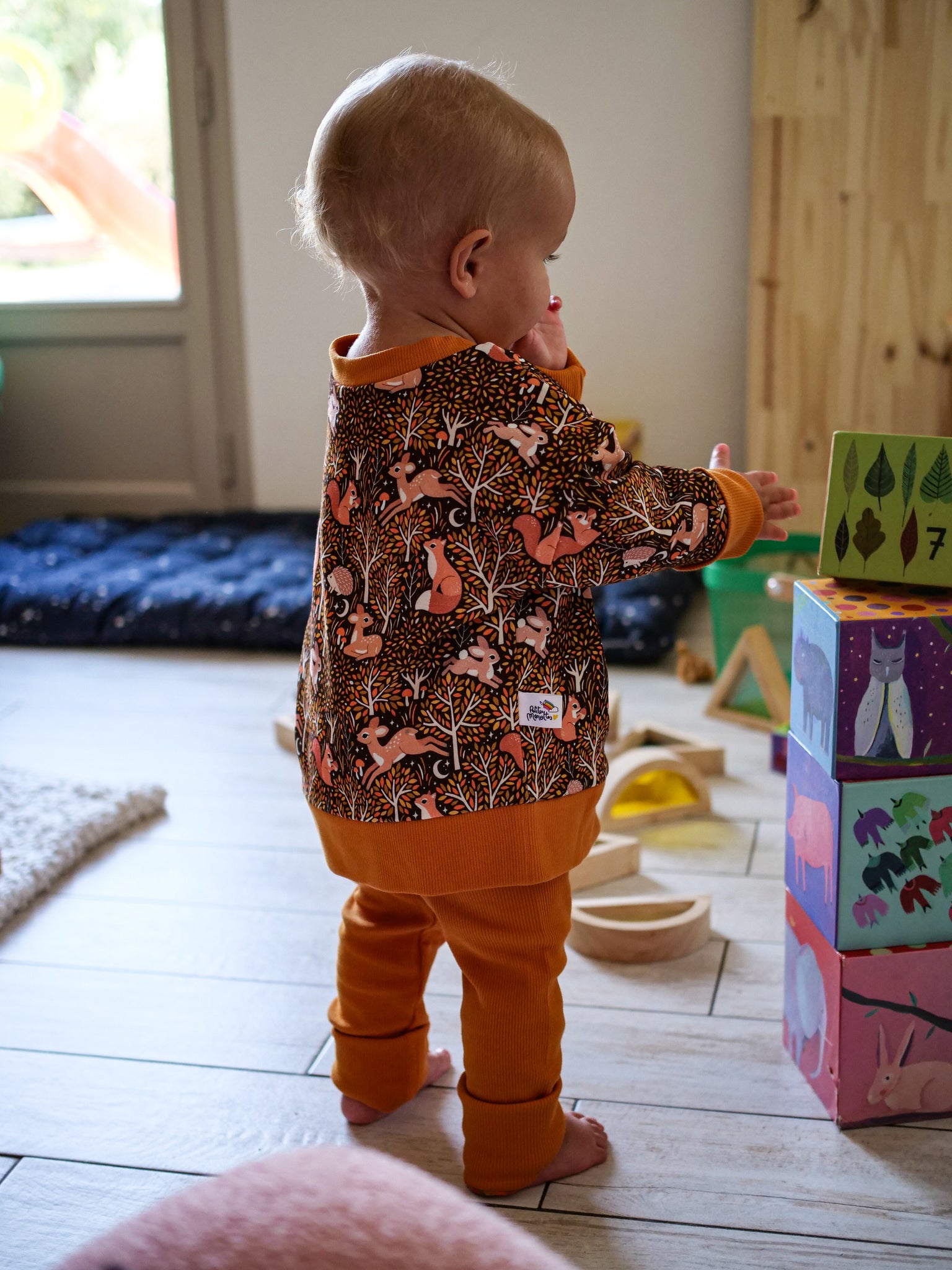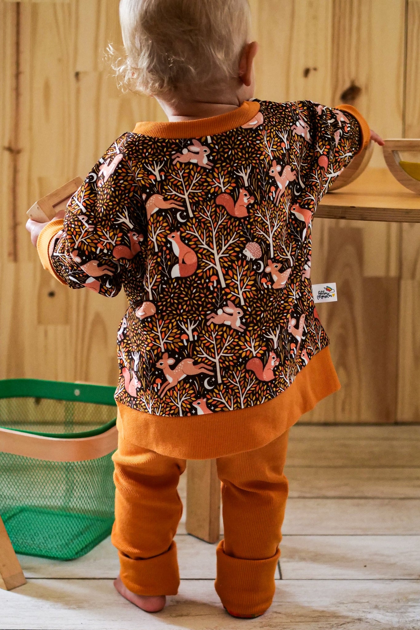 Les bandes des poignets peuvent se porter pliées et se déplient à mesure que l'enfant grandit. À porter en manche 3/4 ou bien loose selon les préférences.